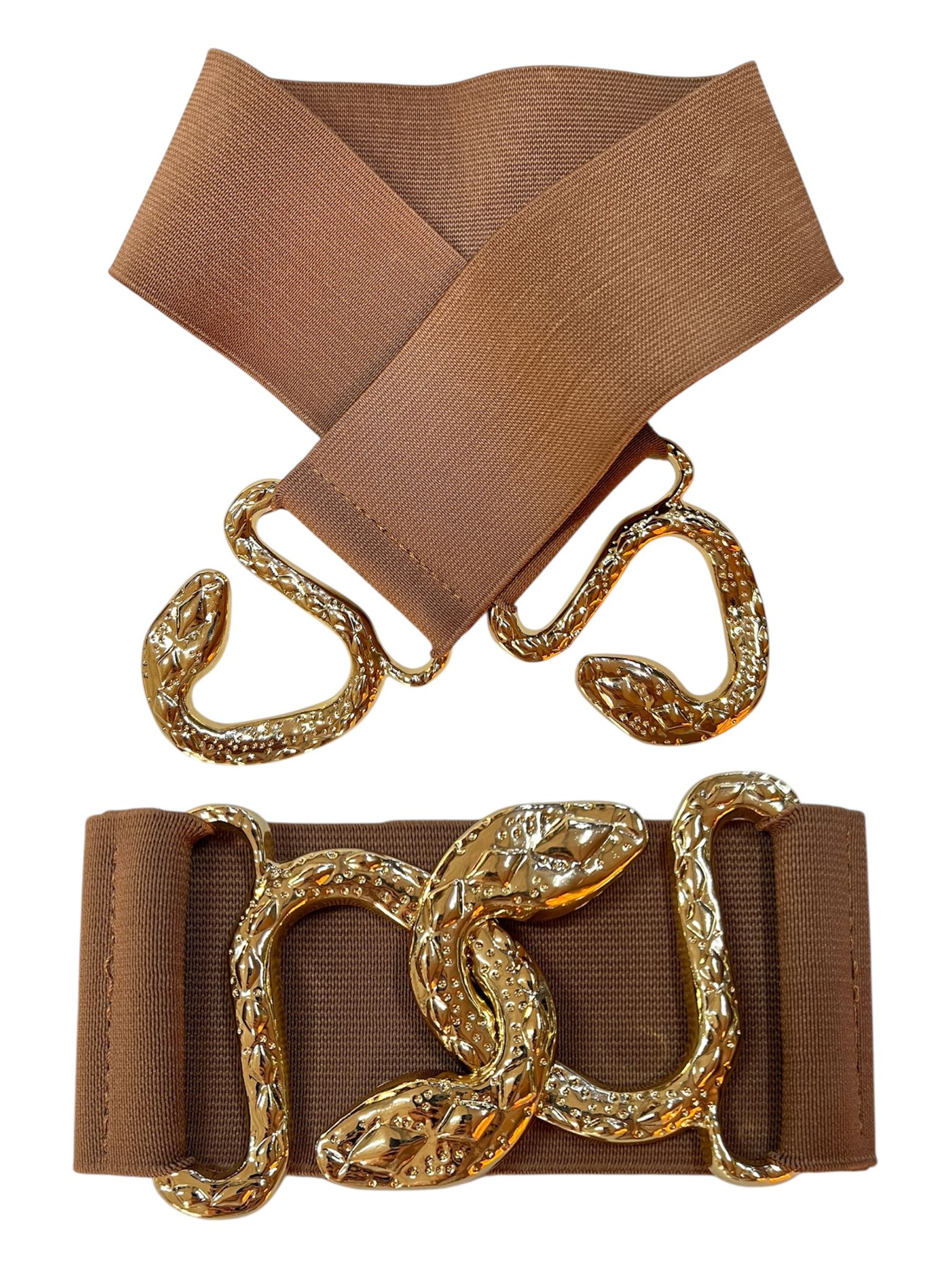 Paçuli Moda Yılan Geçme Tokalı Bej Kadın Kemeri