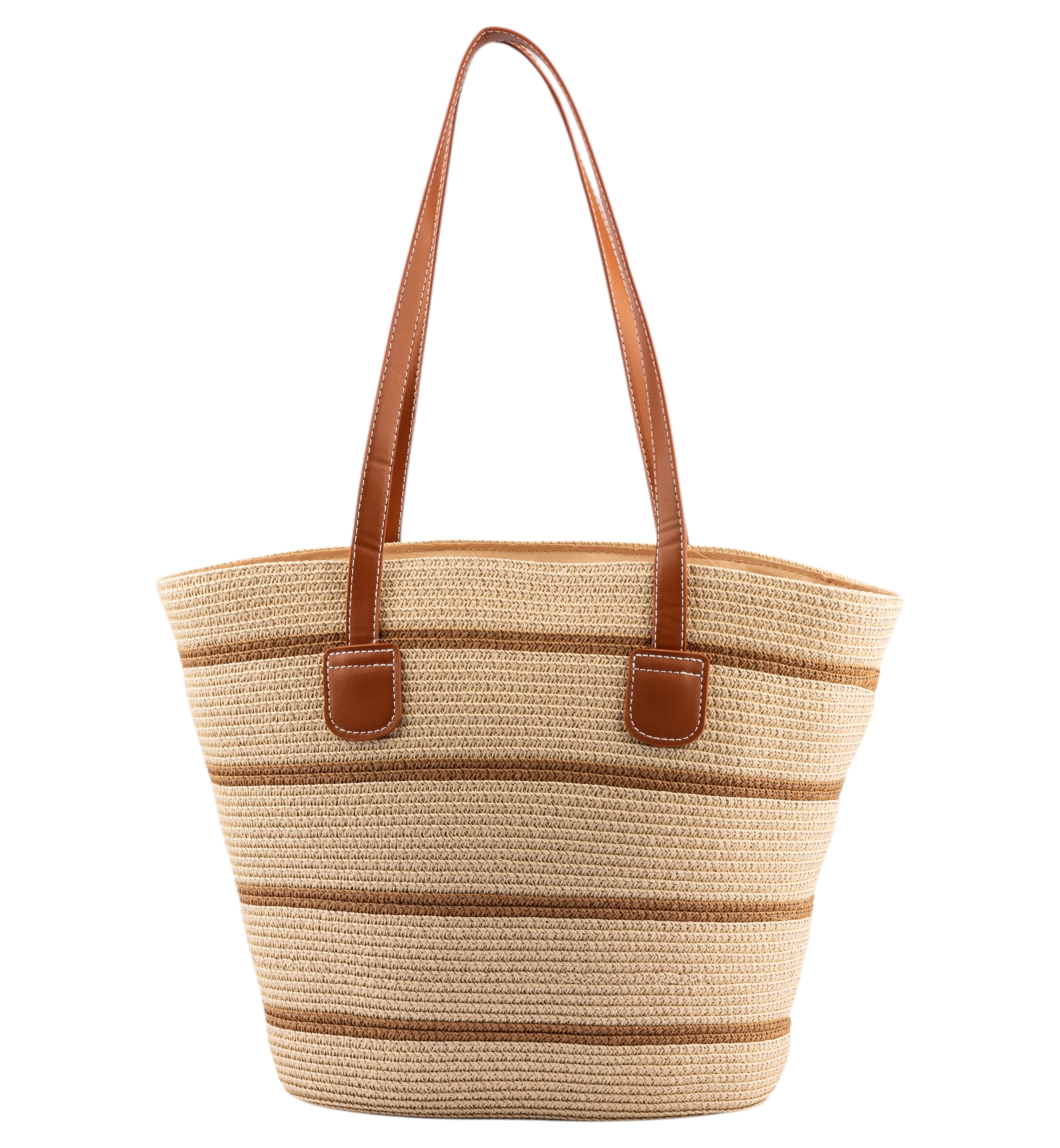 Paçuli Moda Çizgili Hasır Plaj Çantası