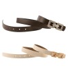 Paçuli Moda Çift Kare Tokalı Bej Kadın Kemer